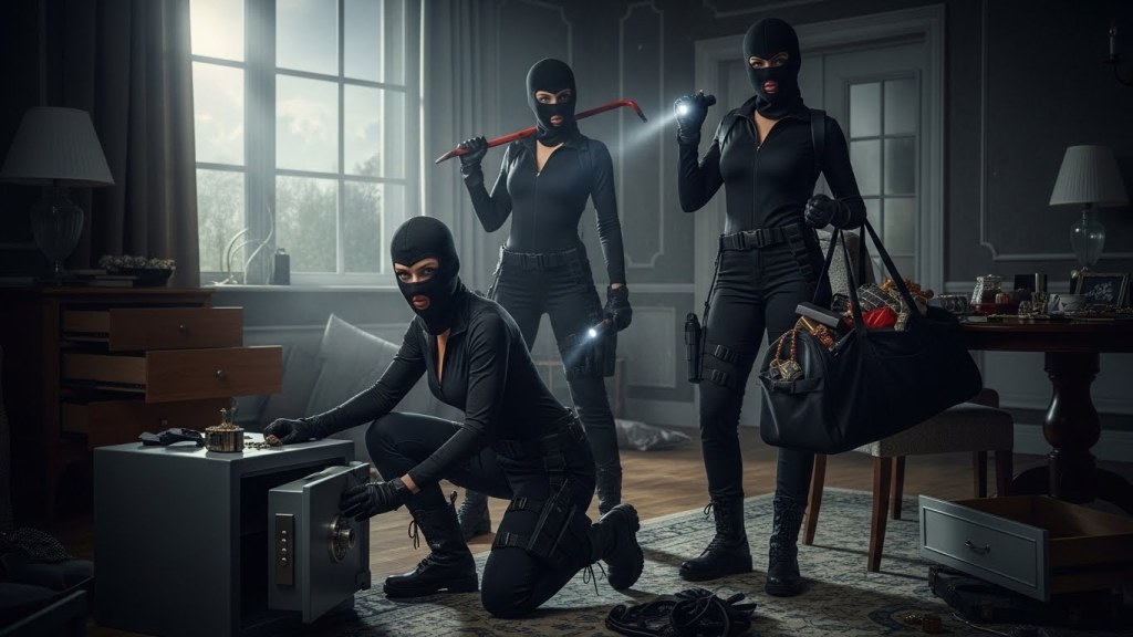I move cautiously into the living room. That is when I see her. A woman dressed head to toe in black, rifling through my things. She spins around, surprise flashing across her face.